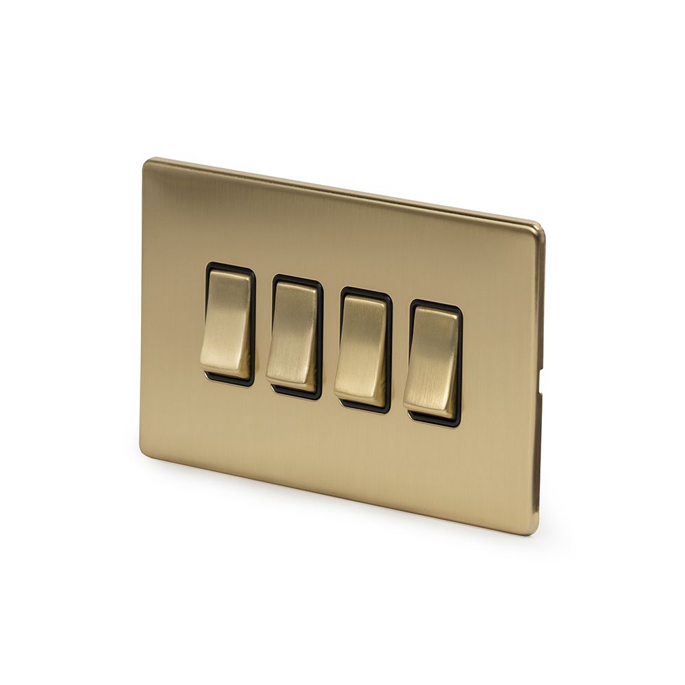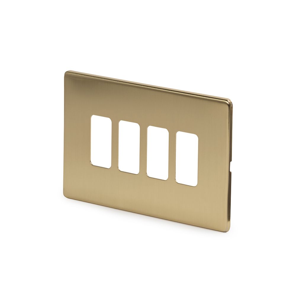 The Savoy Collection Brushed Brass 4 Gang RM Rectangular Module Grid Switch Plate