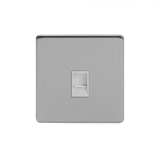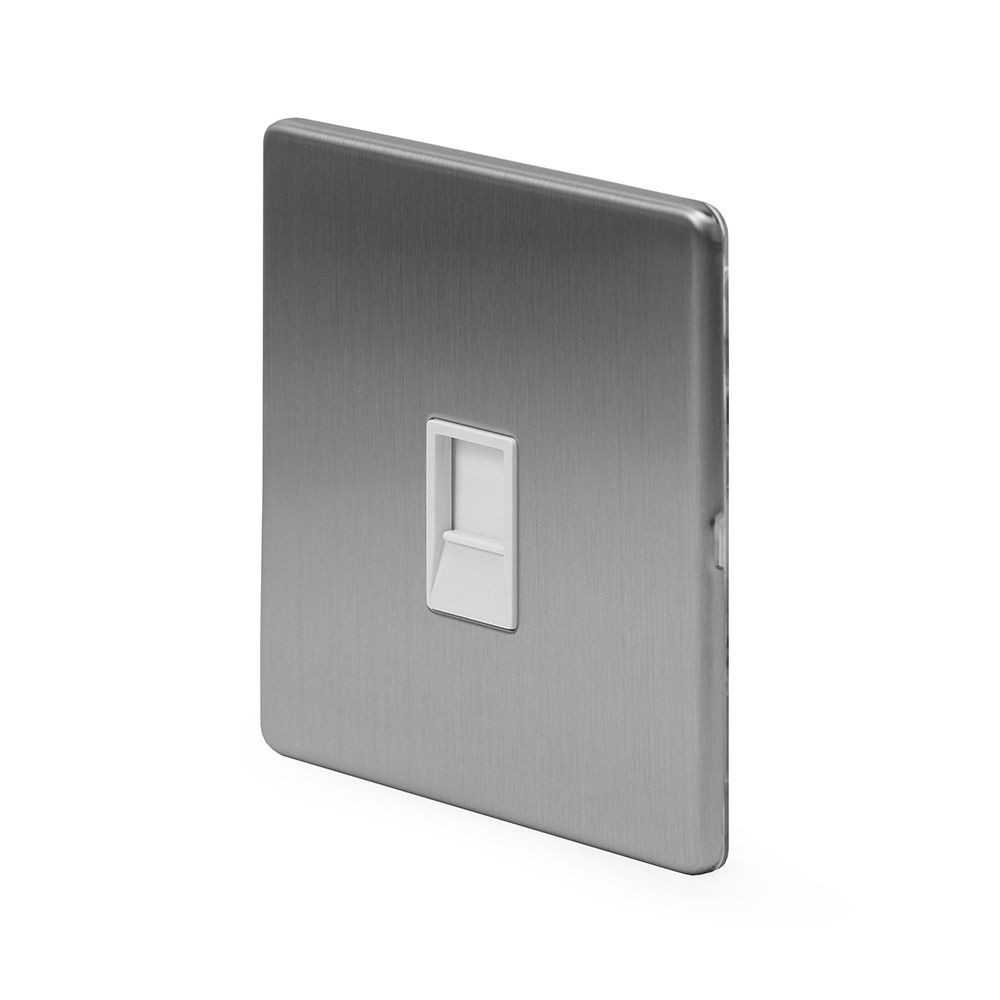 The Lombard Collection Brushed Chrome 1 Gang Data Socket RJ45 Ethernet Cat5/Cat6 Wht Ins Screwless