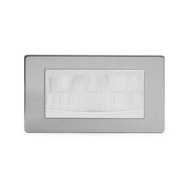 This beautiful Brushed Chrome 2 Gang 4 Module Brush Plate allows you to feed cables through it, allowing you to have tidy space, safely.