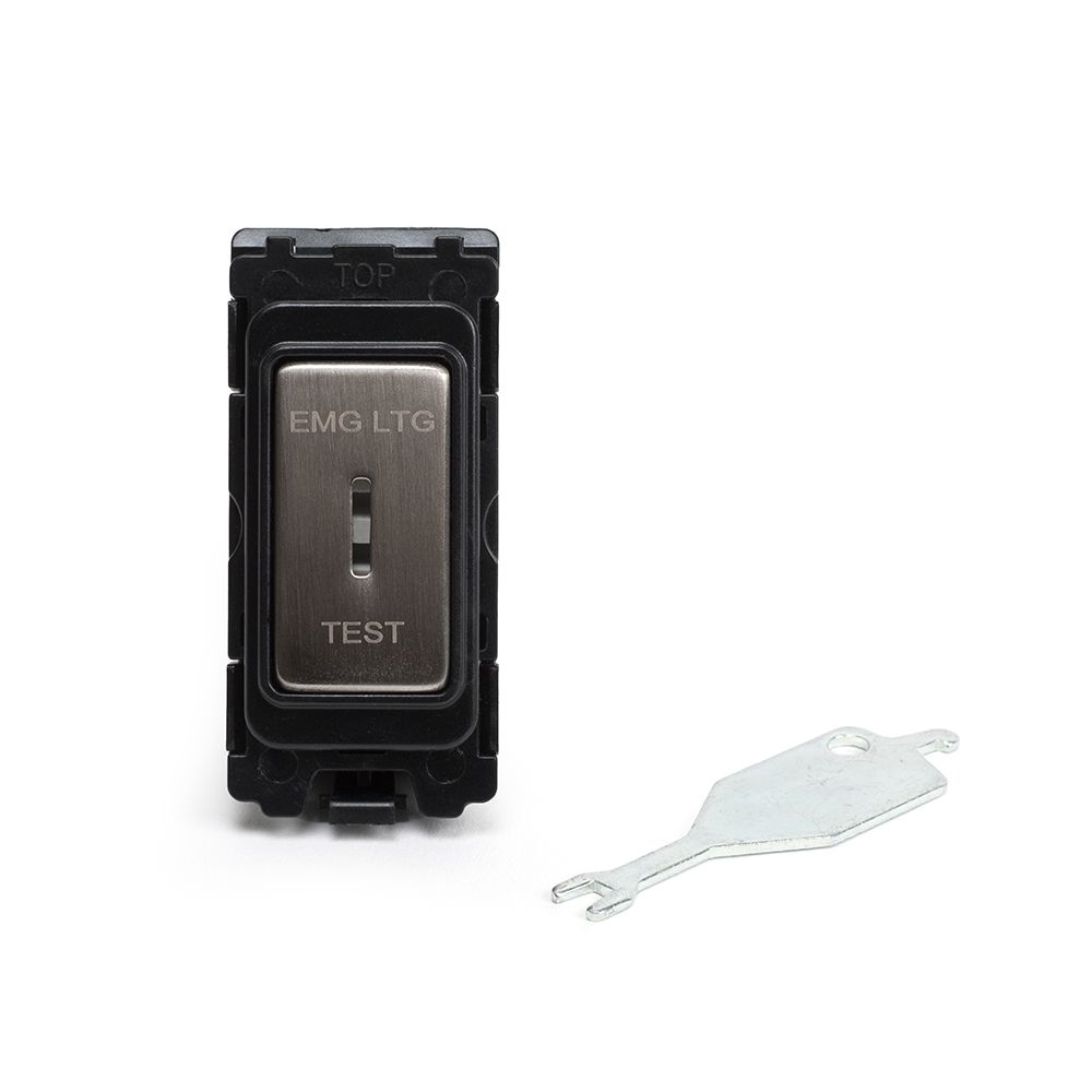 The Lombard Collection Brushed Chrome 20AX Double Pole 'EMG LTG TEST' RM-Grid Switch Module
