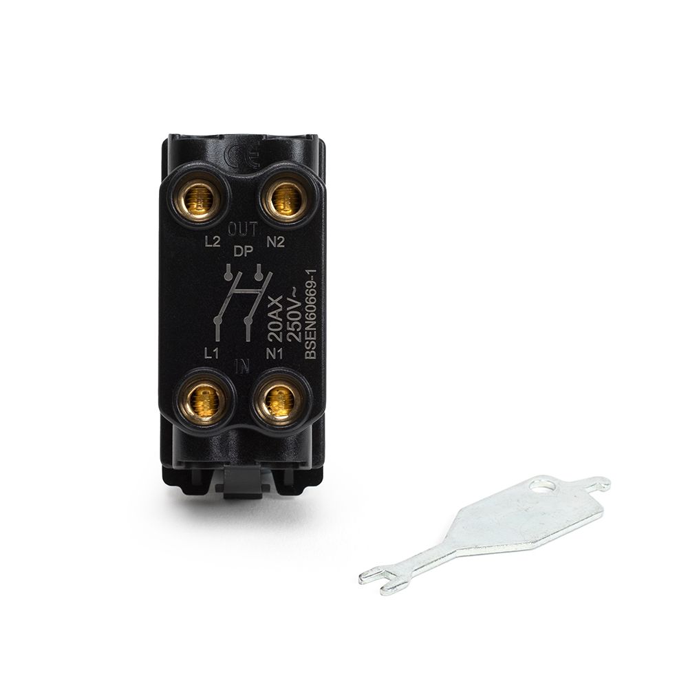 This 20A Double Pole key switch module engraved 'EMG LTG TEST' is used for isolating/testing a supply in a commercial situation when you have emergency lights. If you use the key, it replicates the power being dropped off. This Brushed Chrome RM Module from the Lombard Collection is compatible with both our RM and Dual (RM+CM) Grid Plates. With these you can create a wide range of bespoke plates such as dimmer and rocker switch combinations, to fulfil almost every imaginable lighting or isolation switch need for your home. This RM module is not compatible with CM, EM, LT1, LT2 or LT3 Plates.