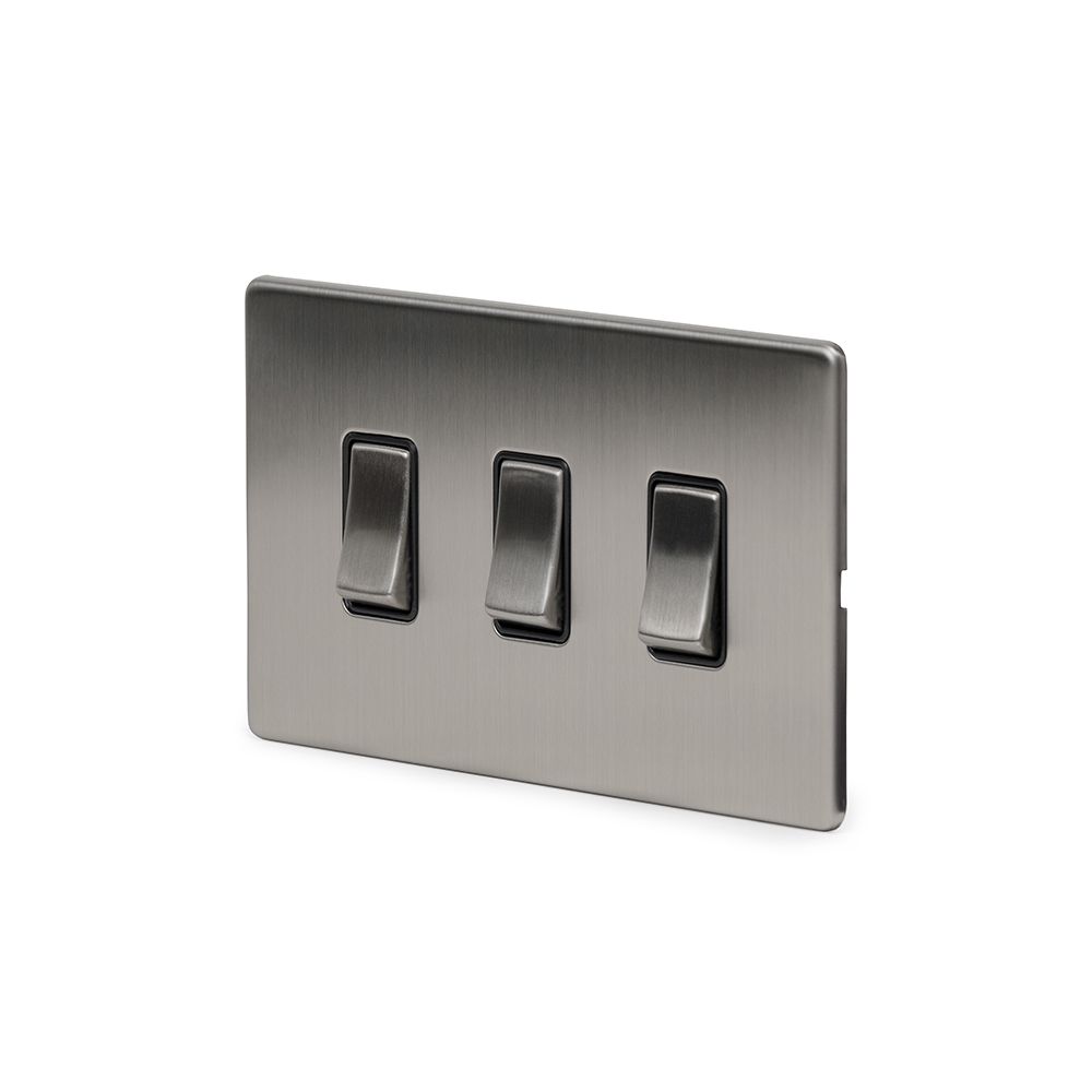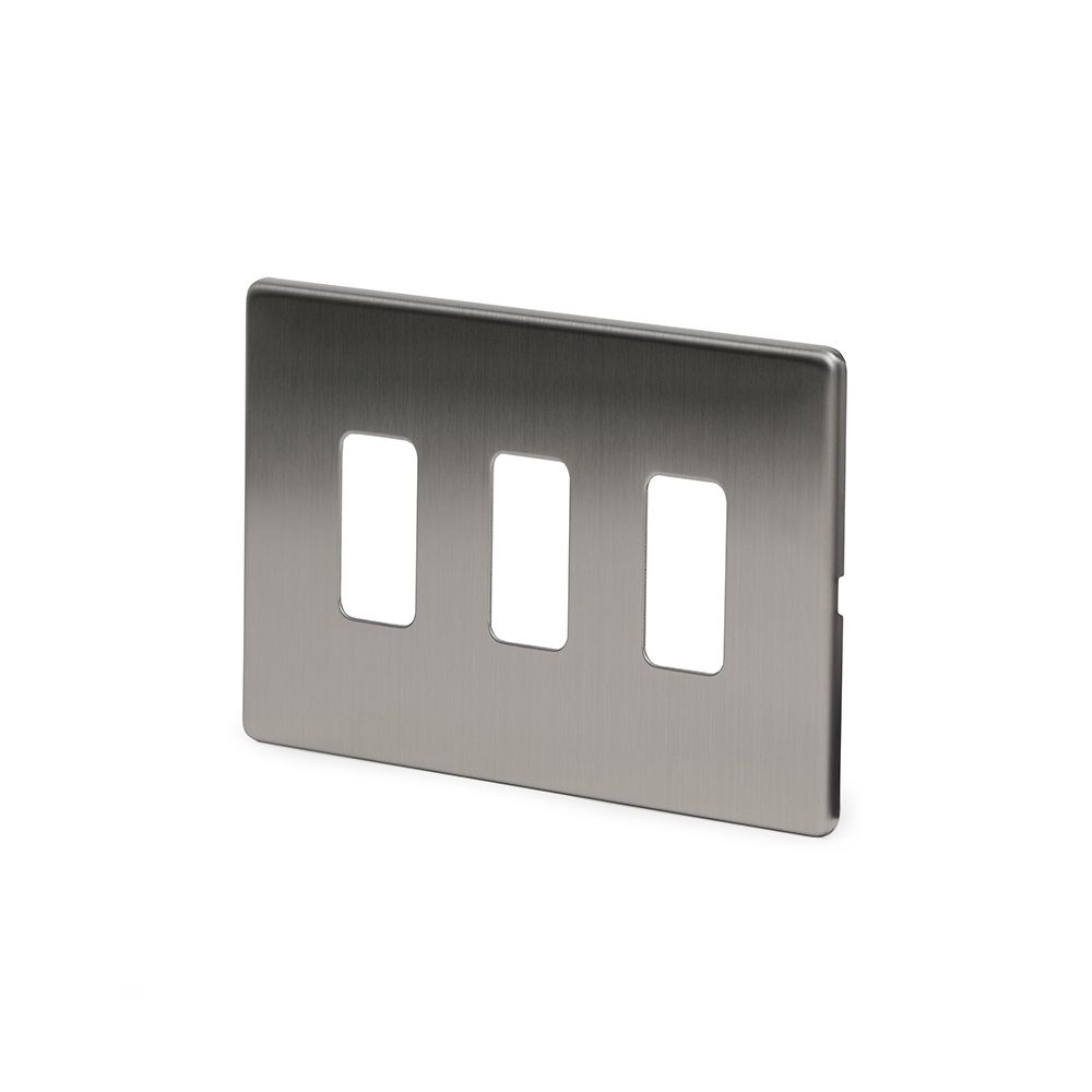The Lombard Collection Brushed Chrome 3 Gang RM Rectangular Module Grid Switch Plate
