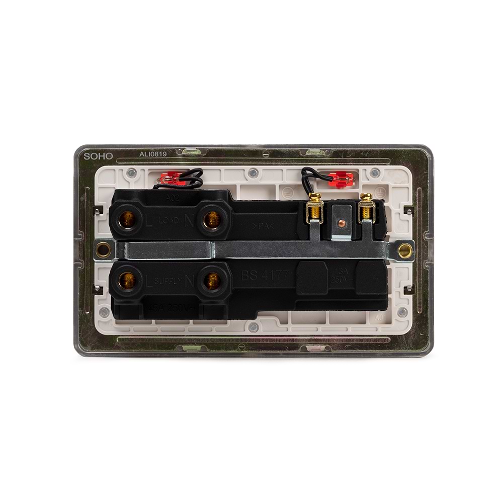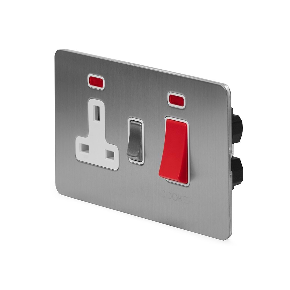 The Lombard Collection Brushed Chrome Flat Plate 45A Cooker Control Unit With Neon Wht Ins Screwless