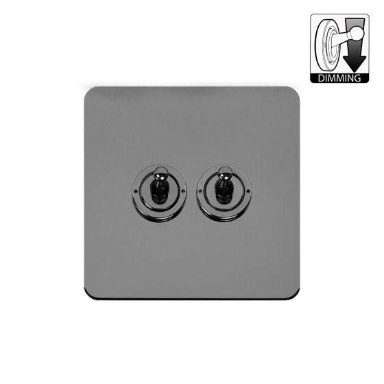 The Connaught Collection Flat Plate Black Nickel 2 Gang Dimming Toggle Switch