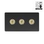 Soho Lighting Lighting Matt Black & Brushed Brass 3 Gang Dimming Toggle Switch