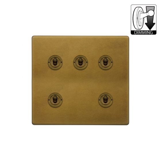 The Belgravia Collection Old Brass 5 Gang Dimming Toggle Switch