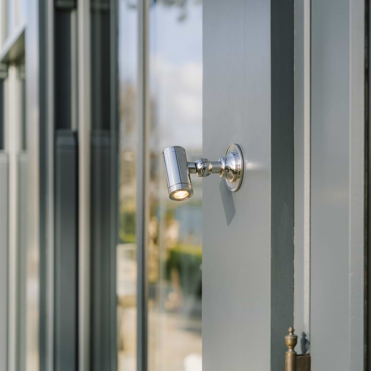 Part of the distinct Chelsea Collection, the Modern Spot Light comes as a matching marine-grade steel mount and spotlight in a subtle nautical style, and provides a warm, inviting light that blends beautifully with contemporary or ocean-side property. Finished in marine-grade steel and featuring a seamless tightening screw, this directional spotlight can be tilted up and down to highlight garden features, adding a welcoming touch to your home.