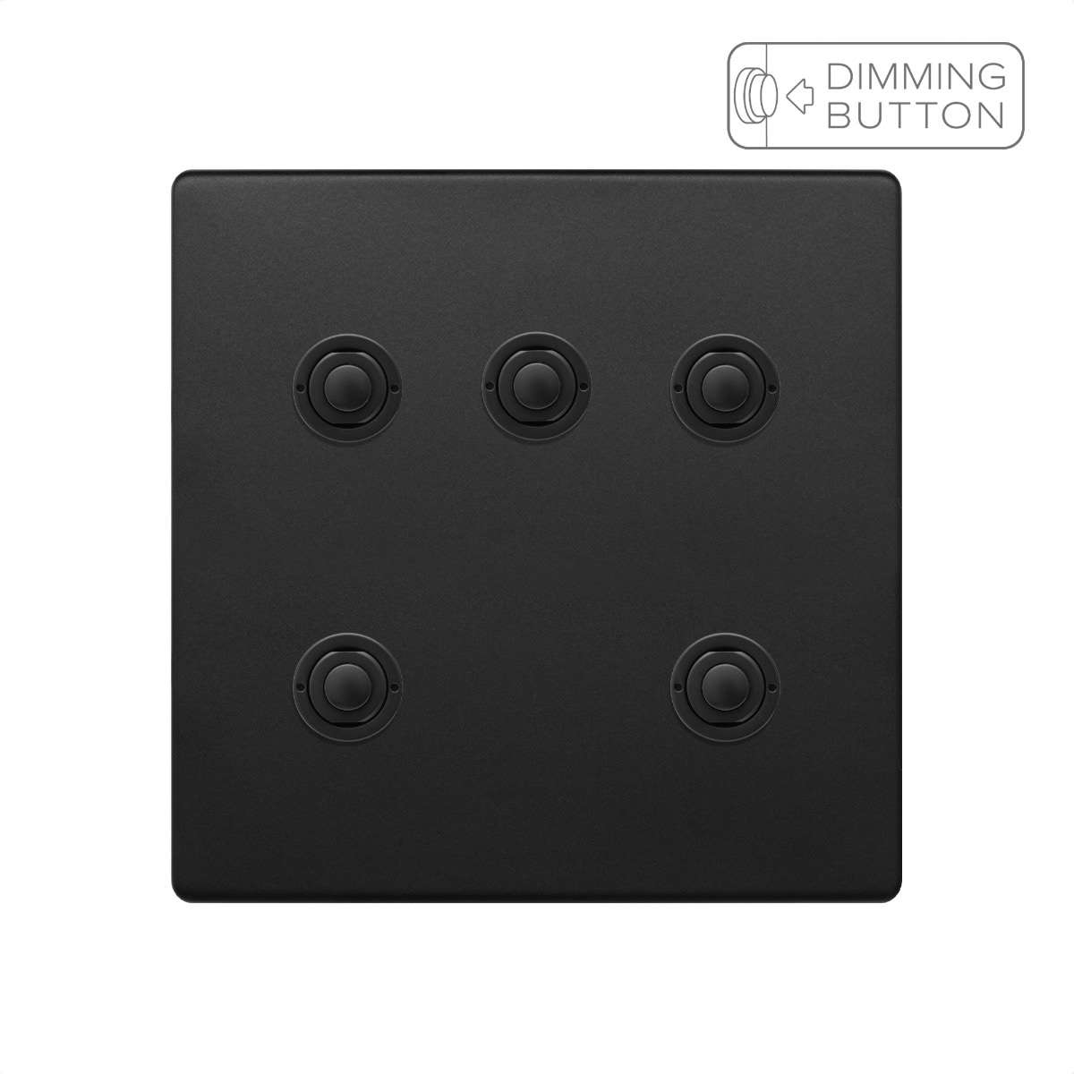 This elegant 5 gang Push Button Dimmer Switch in Matt Black is backed by award-winning Enkin technology the first reliable dimming technology for the UK market - allowing you to change the atmosphere, vitality and ambiance of a space at the touch of a button.