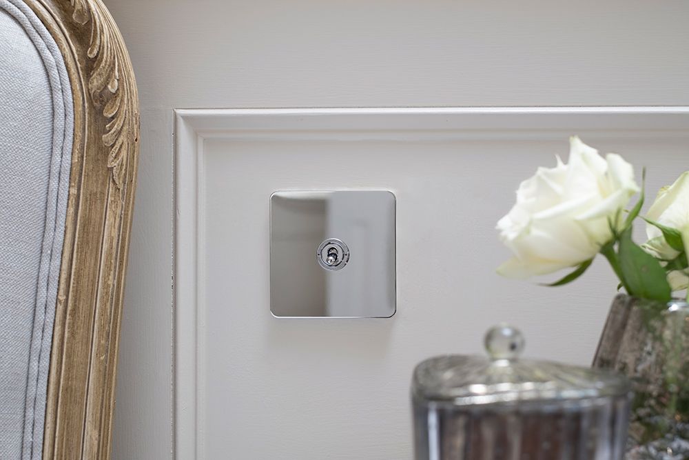 Polished Chrome is generally considered to suit modern/contemporary styles. However, this Screwless Soho Lighting Polished Chrome Flat Plate 20A 1 Gang intermediate Toggle Switch also complements period styles such as art deco, arts and crafts and other homes of distinction. It looks particularly striking when set against darker finishes, wood or panelling. The Finsbury collection is a popular choice for bathrooms and kitchens as it often harmonises with other polished chrome fittings, such as taps, towel rails or appliances.