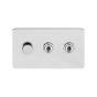 The Finsbury Collection Polished Chrome Flat Plate 3 Gang Switch with 1 Dimmer (1x150W LED Dimmer 2x20A 2 Way Toggle)