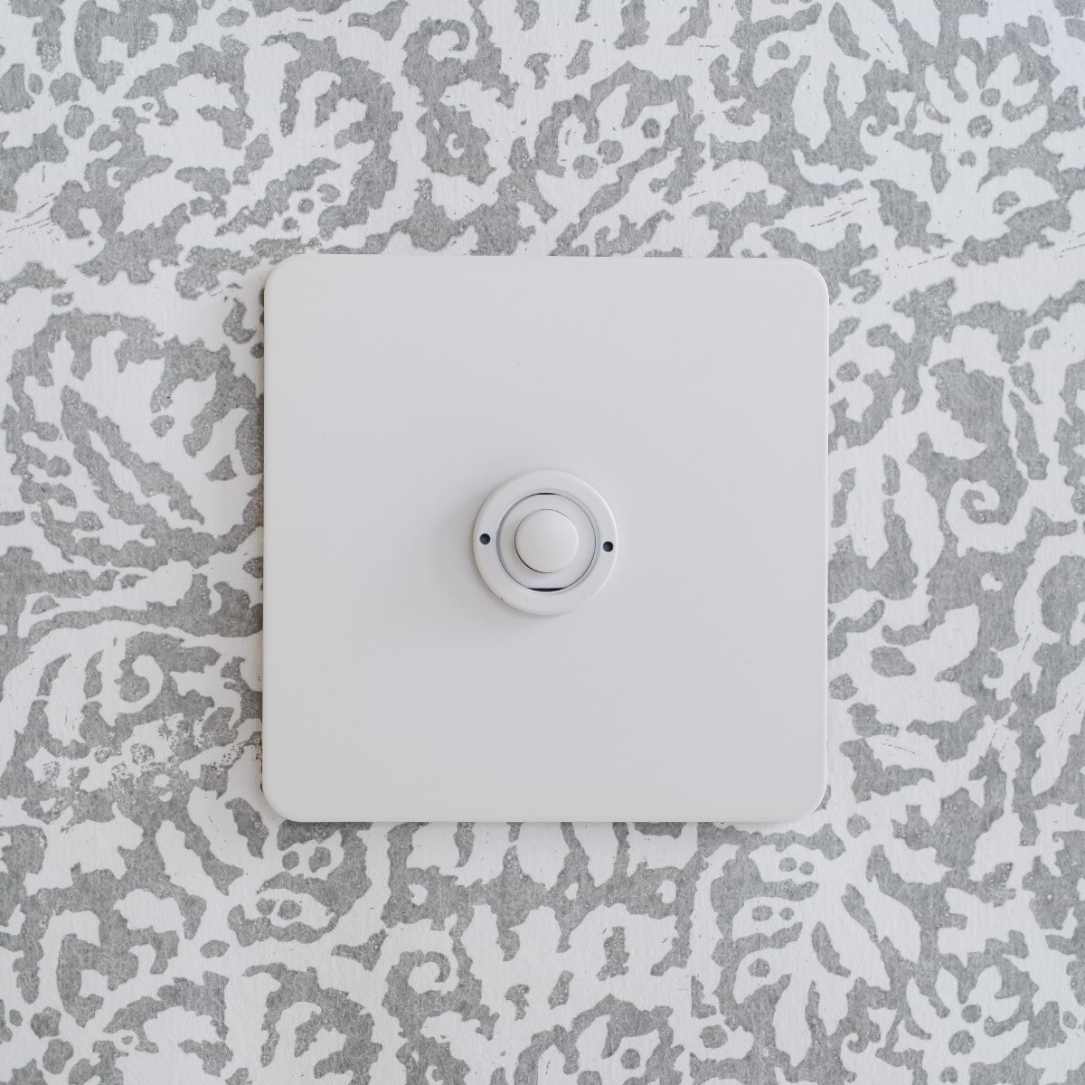 An elegant addition to our switch collection, the Push Button offers a sleek, modern design for those who love a contemporary aesthetic. The 1 gang Push Button Switch in White Metal operates your lighting with a simple push of a button.