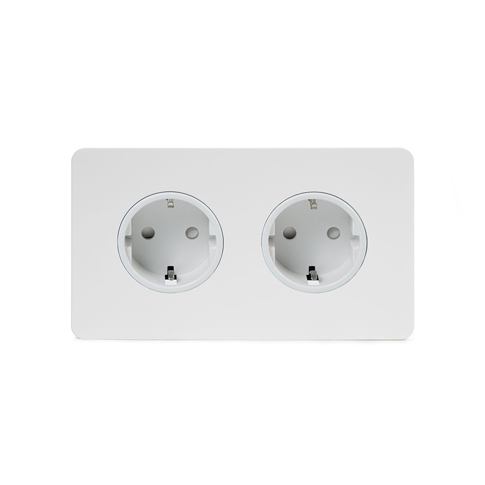 The Eldon Collection White Metal Flat Plate 16A 2 Gang Euro Schuko Socket Wht Ins Screwless