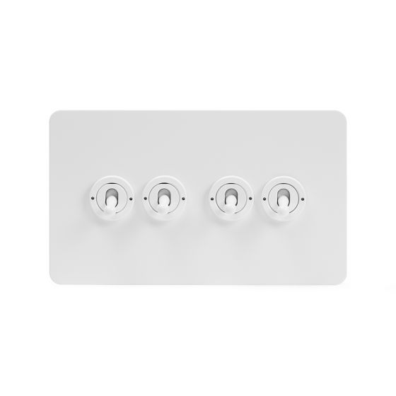The Eldon Collection White Metal Flat Plate 20A 4 Gang Intermediate Toggle Switch Screwless