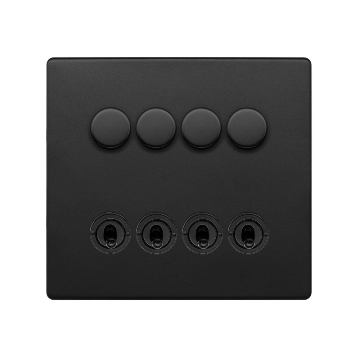 The Camden Collection Matt Black 8 Gang Dimmer & Toggle Combo 4x150W LED Dimmer 4x20A Toggle
