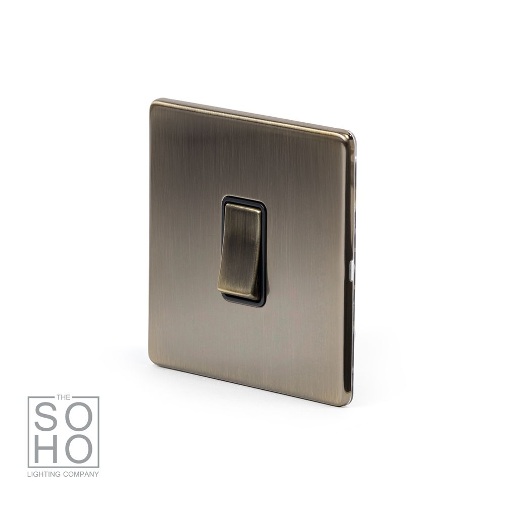 This Antique Brass 10A 1 Gang Intermediate Switch with Black Insertis plated, brushed and aged to create the warmest of our finishes and a perfect complement for many period styles.