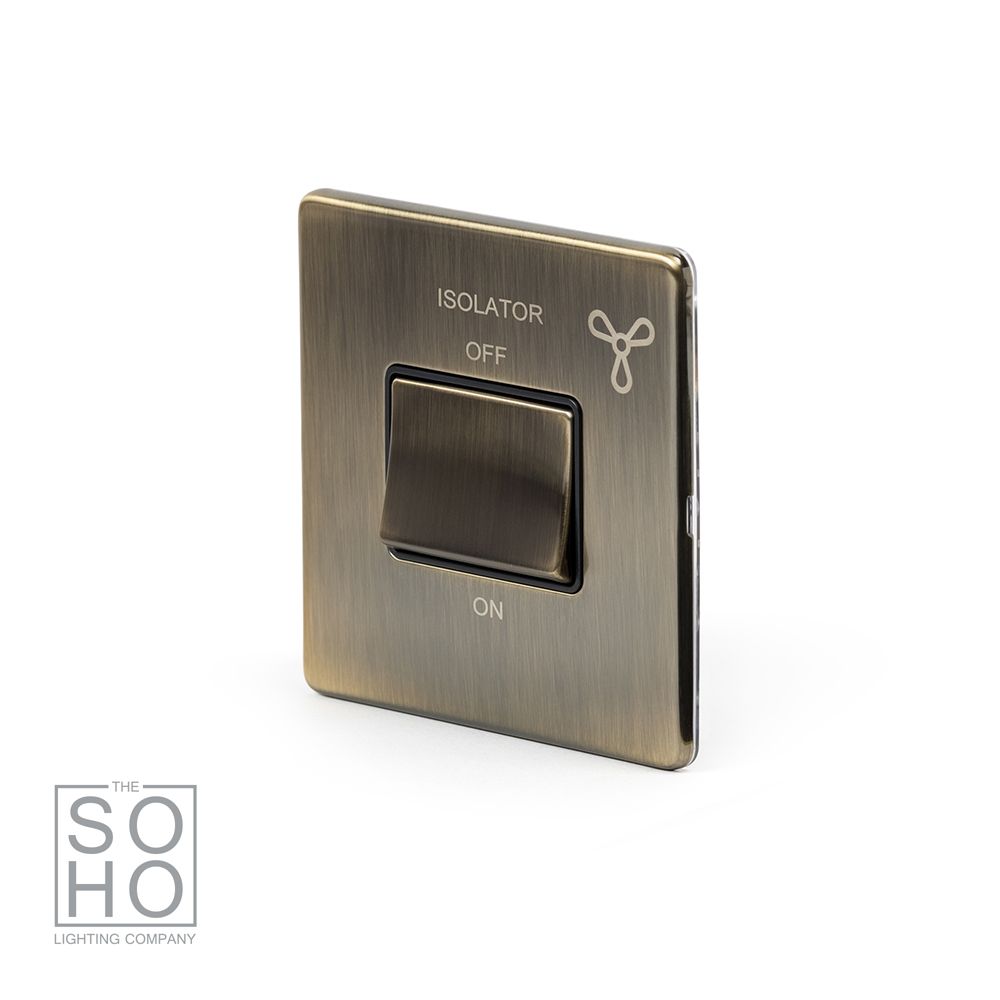 This Antique Brass 1 Gang 1 way Fan Isolator Switch with Black Insertis plated, brushed and aged to create the warmest of our finishes and a perfect complement for many period styles.