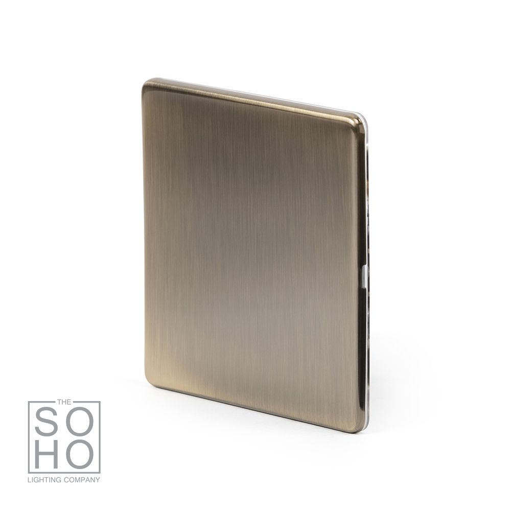 The Charterhouse Collection metal 1 Gang Blanking Plate Screwless Antique Brass