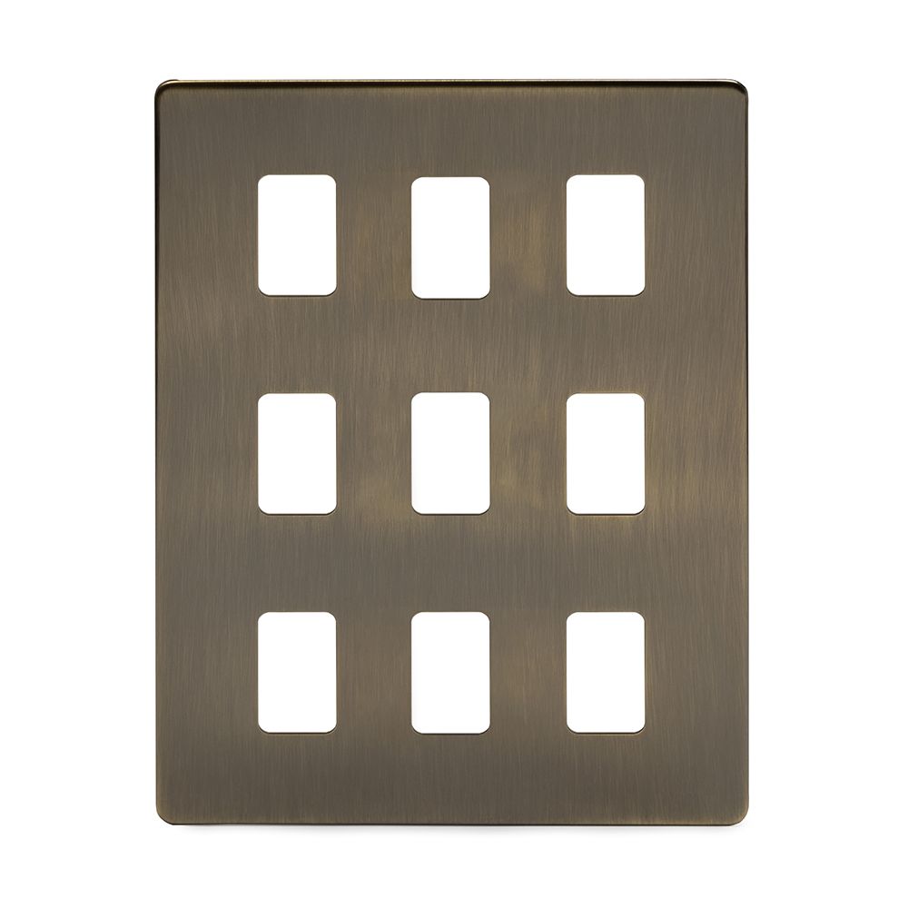 The Charterhouse Collection 9 Gang RM Rectangular Module Grid Switch Plate Antique Brass