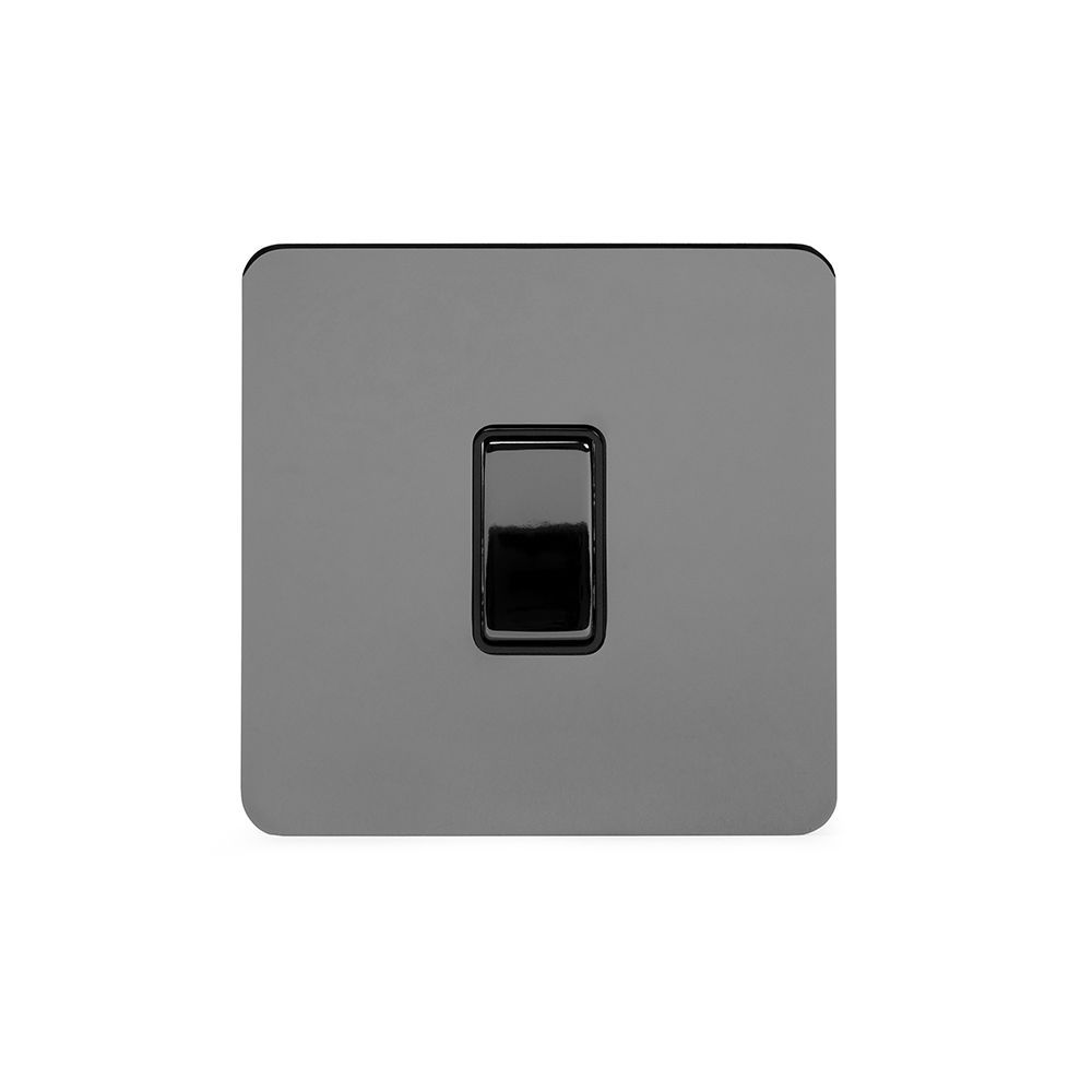 The Connaught Collection Black Nickel Flat Plate 1 Gang Retractive Switch Blk Ins Screwless