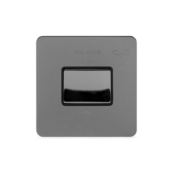 The Connaught Collection Black Nickel Flat Plate 10A 1 Gang 1 Way 3-Pole Extractor Fan Isolator Switch Blk Ins Screwless