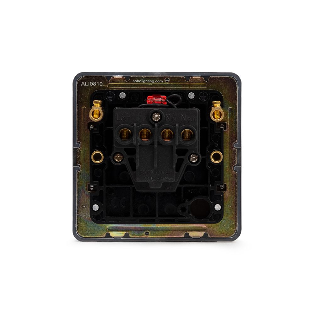 The Connaught Collection Black Nickel Flat Plate 20A 1 Gang Double Pole Switch With Neon Blk Ins Screwless