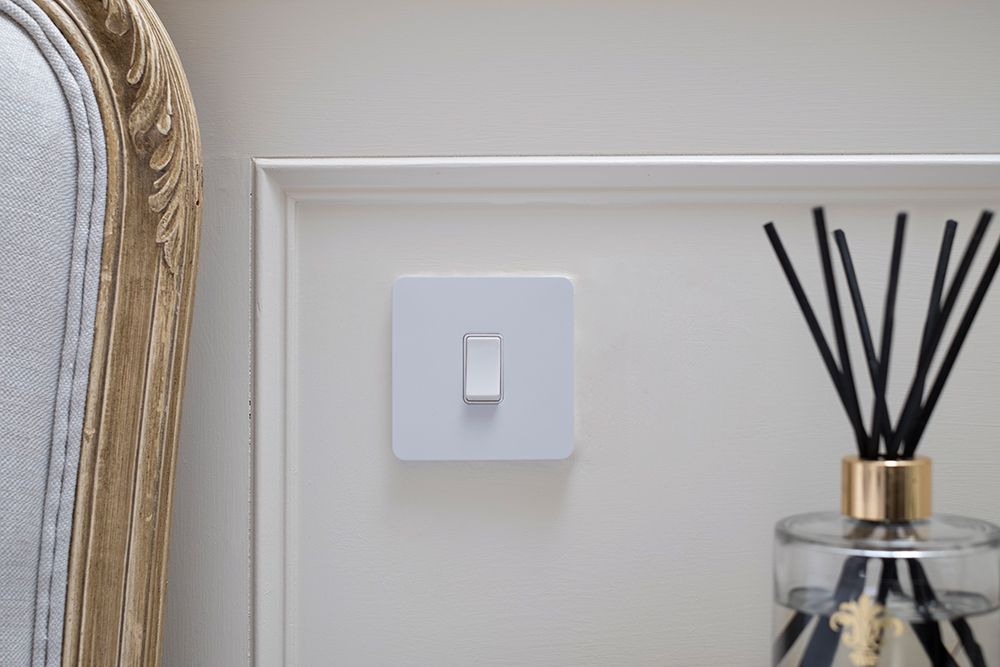 The fresh, clean look and neutral screwless finish of this screwless White Metal 1 gang light switch from Soho Lighting complements all interior design styles and finishes. The Eldon Collection is a popular choice for modern and contemporary styled homes and works seamlessly in white kitchens and rooms with neutral colours and clean lines.