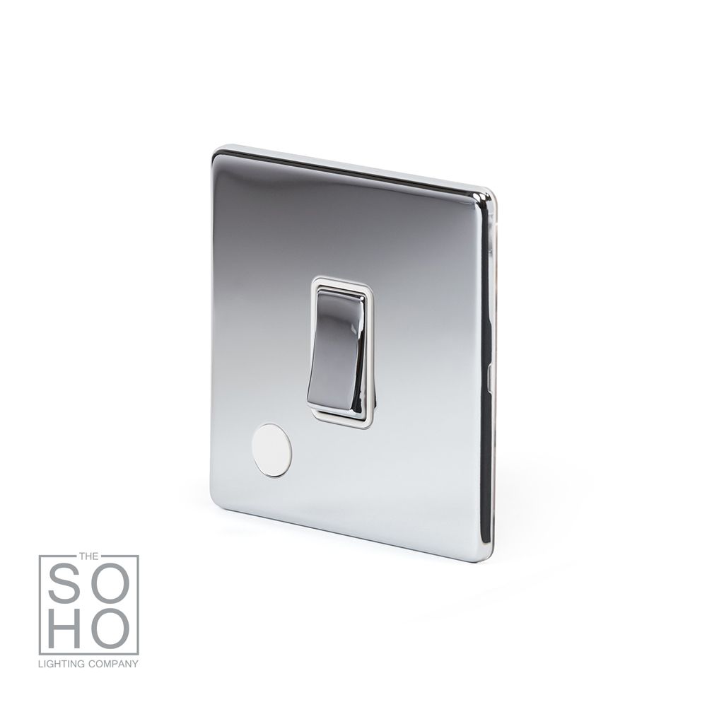 The Finsbury Collection Polished Chrome 1 Gang 20A Double Pole Switch Flex Outlet Wht Ins Screwless