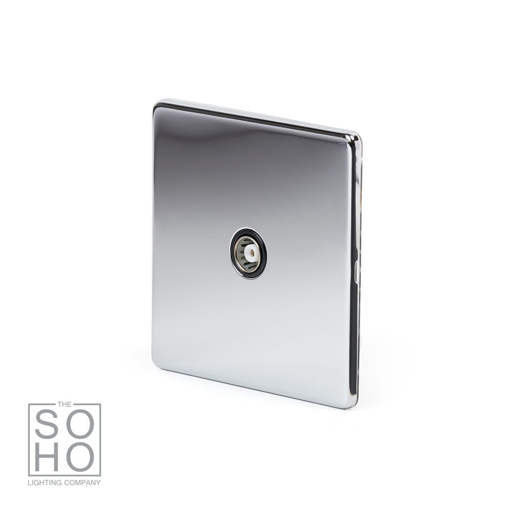 The Finsbury Collection Polished Chrome TV Coaxial Aerial Socket Black Ins Screwless