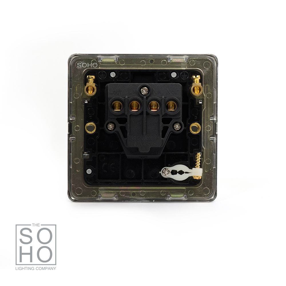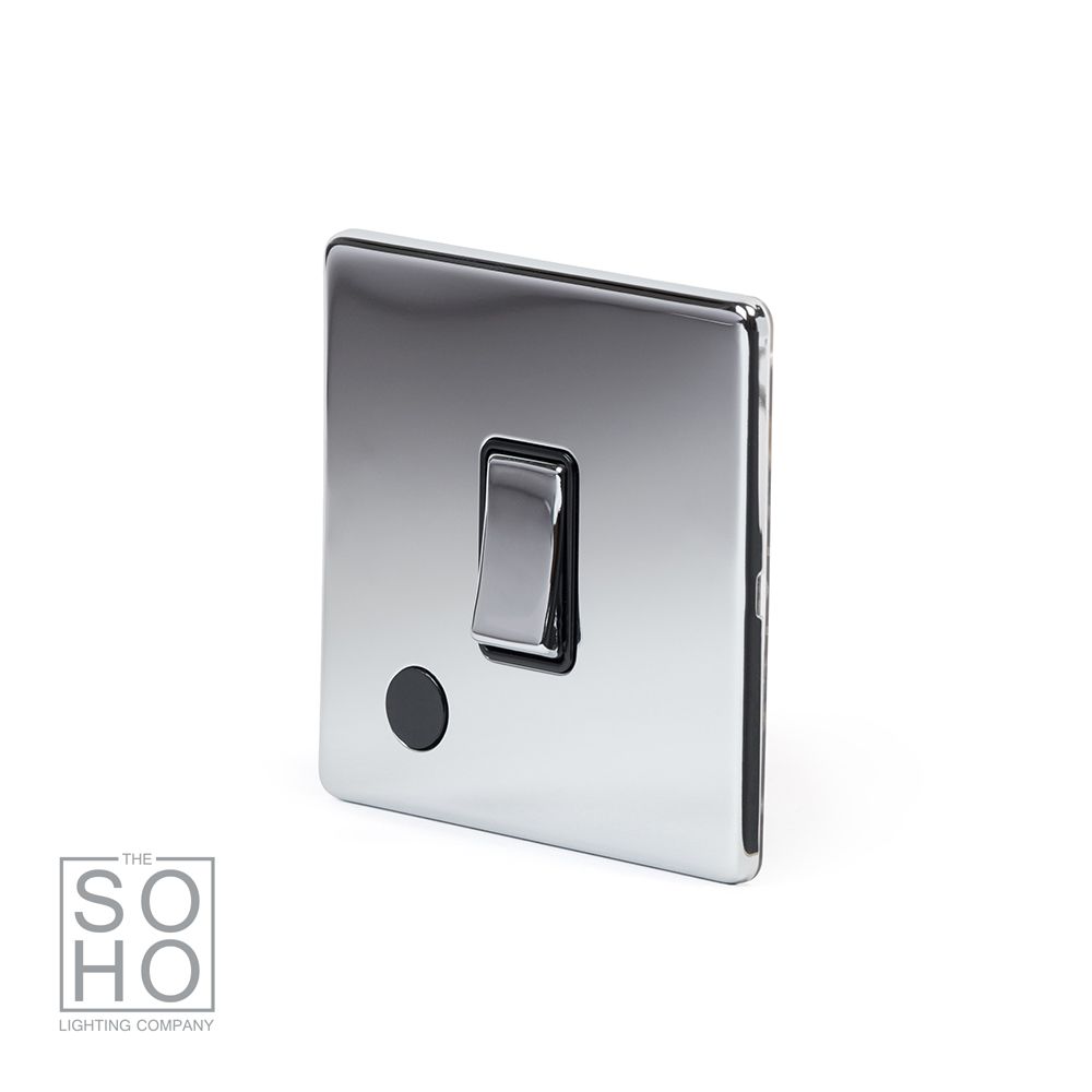 The Finsbury Collection Polished Chrome 1 Gang 20A Double Pole Switch Flex Outlet Blk Ins Screwless