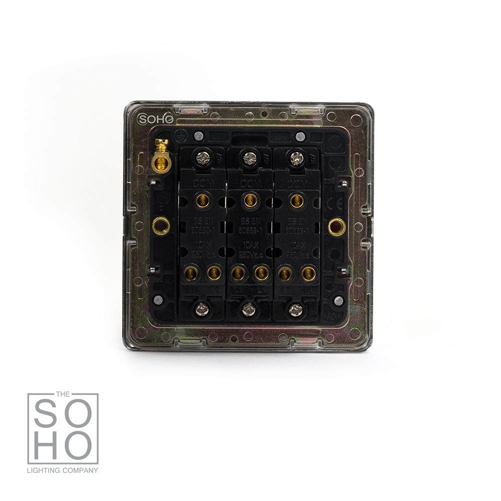 The Finsbury Collection Polished Chrome 3 Gang 2 Way 10A Light Switch Blk Ins Screwless