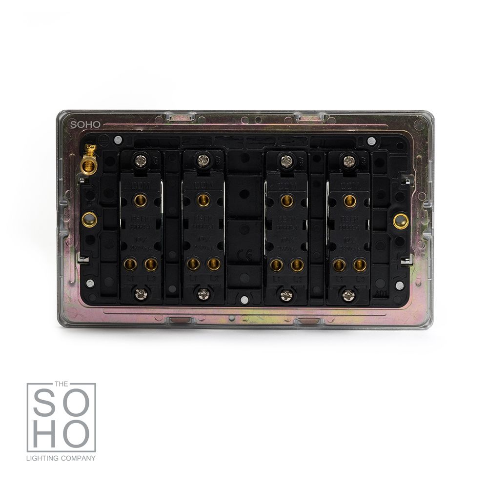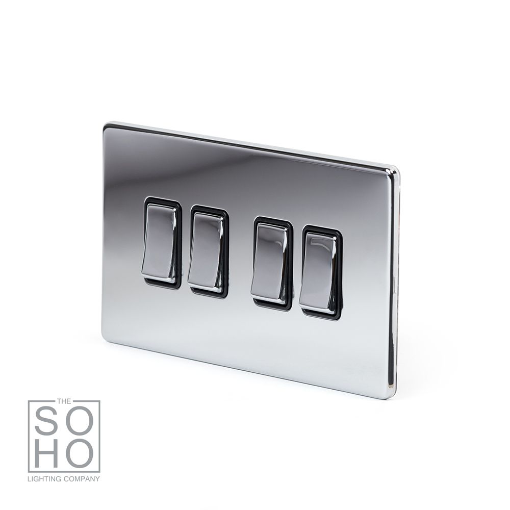 The Finsbury Collection Polished Chrome 4 Gang 2 Way 10A Light Switch Blk Ins Screwless