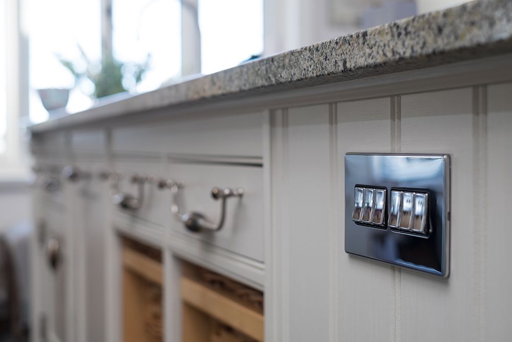 Polished Chrome is generally considered to suit modern/contemporary styles. However, this Polished Chrome 10A 6 Gang 2 Way Switch with Black Insertalso complements period styles such as art deco, arts and crafts and other homes of distinction. It looks particularly striking when set against darker finishes, wood or panelling. The Finsbury collection is a popular choice for bathrooms and kitchens as it often harmonises with other polished chrome fittings, such as taps, towel rails or appliances.