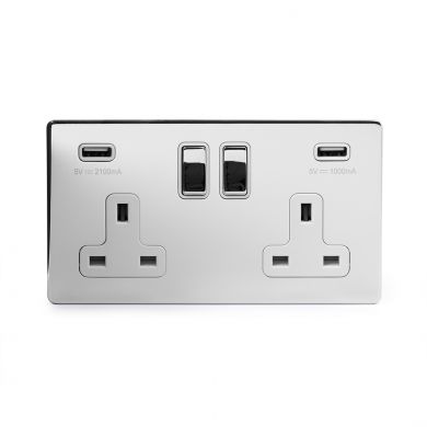 The Finsbury Collection Polished Chrome 2 Gang DP Socket White Ins 13A Screwless