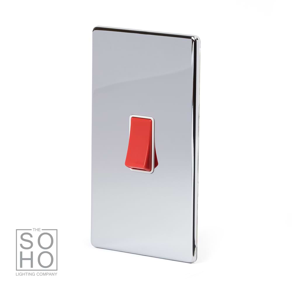 The Finsbury Collection Polished Chrome 45A 1 Gang Double Pole Switch Double Plate Wht Ins Screwless