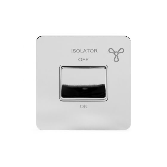 The Finsbury Collection Polished Chrome Flat Plate 10A 1 Gang 1 Way 3-Pole Extractor Fan Isolator Switch Wht Ins Screwless