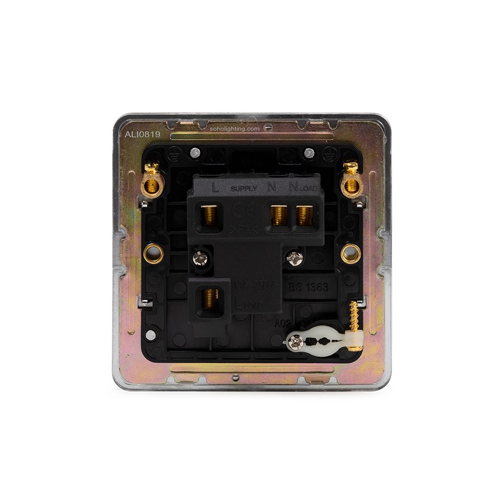 Polished Chrome is generally considered to suit modern/contemporary styles. However, this Screwless Soho Lighting Polished Chrome Flat Plate 13A Unswitched Connection Unit Flex Outlet with black insert also complements period styles such as art deco, arts and crafts and other homes of distinction. It looks particularly striking when set against darker finishes, wood or panelling. The Finsbury collection is a popular choice for bathrooms and kitchens as it often harmonises with other polished chrome fittings, such as taps, towel rails or appliances.