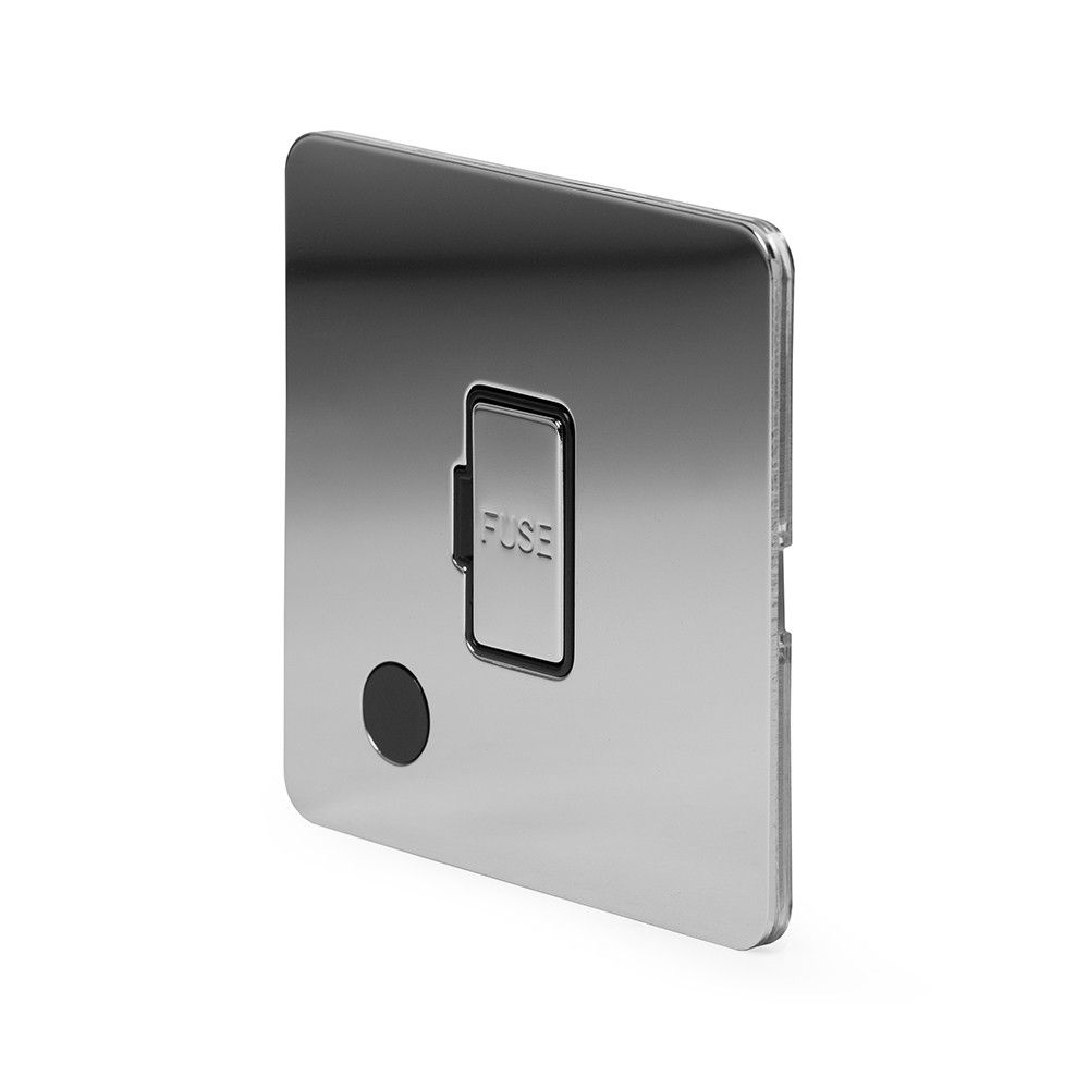 The Finsbury Collection Polished Chrome Flat Plate 13A Unswitched Fused Connection Unit (FCU) Flex Outlet Blk Ins Screwless