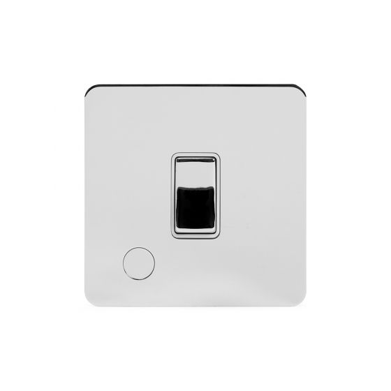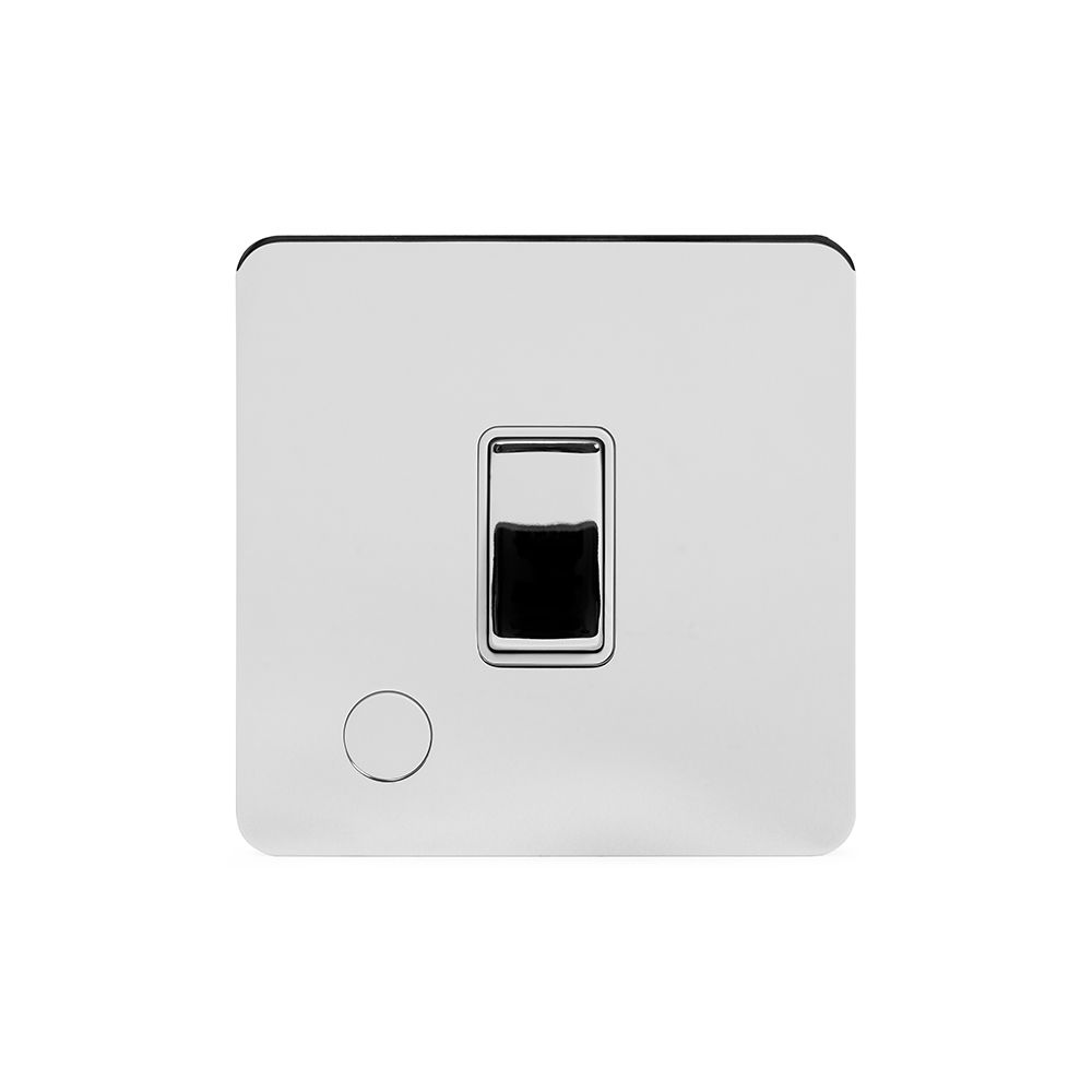 The Finsbury Collection Polished Chrome Flat Plate 20A 1 Gang Double Pole Switch Flex Outlet Wht Ins Screwless