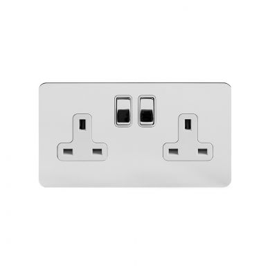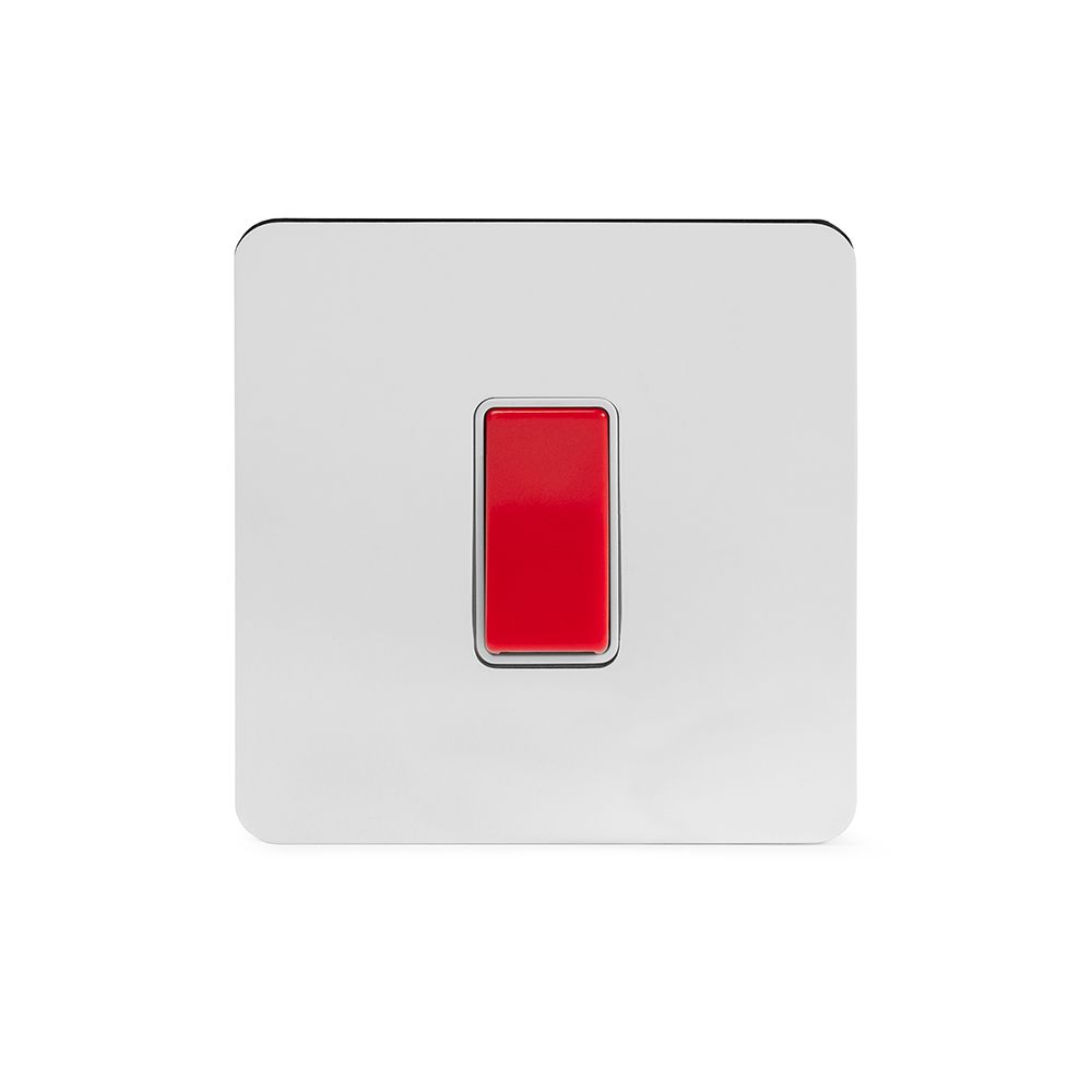 The Finsbury Collection Polished Chrome Flat Plate 45A 1 Gang Double Pole Switch, Single Plate Wht Ins Screwless