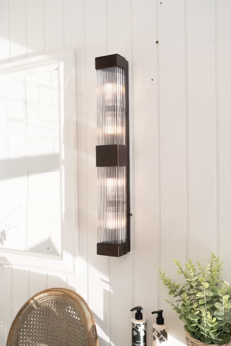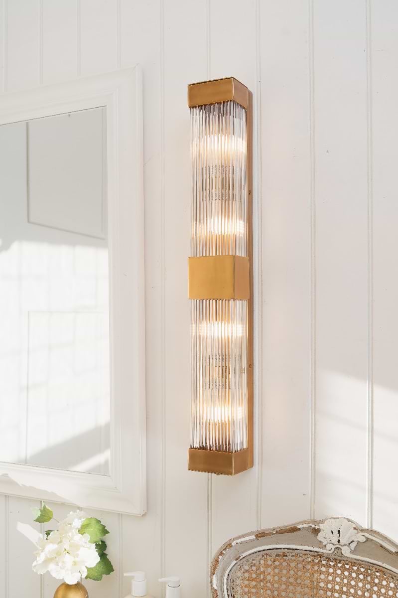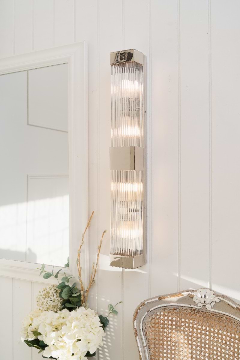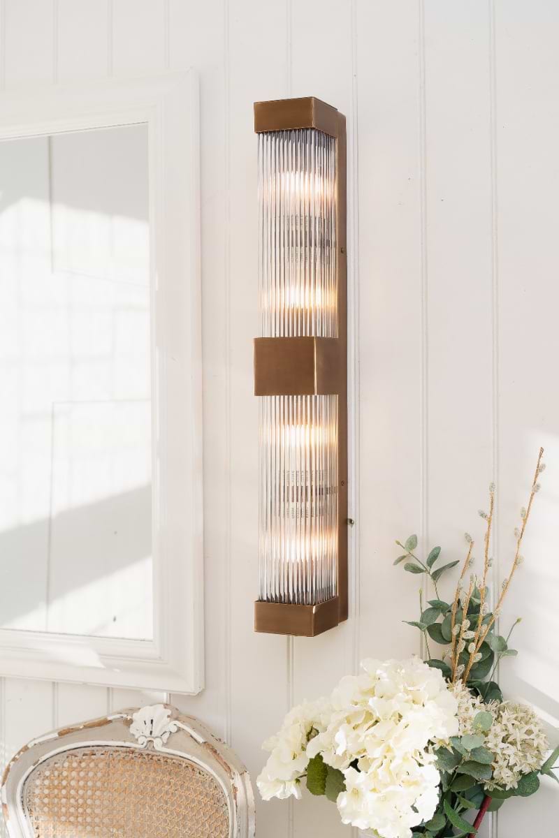 Inspired by Art Deco design, the Gatsby Double Wall Light features a sleek rectangular light with hand-ribbed glass, offering a soft, diffused glow. Its IP rating makes it ideal for bathrooms, and the closed rod design ensures easy fitting and dust-free maintenance.