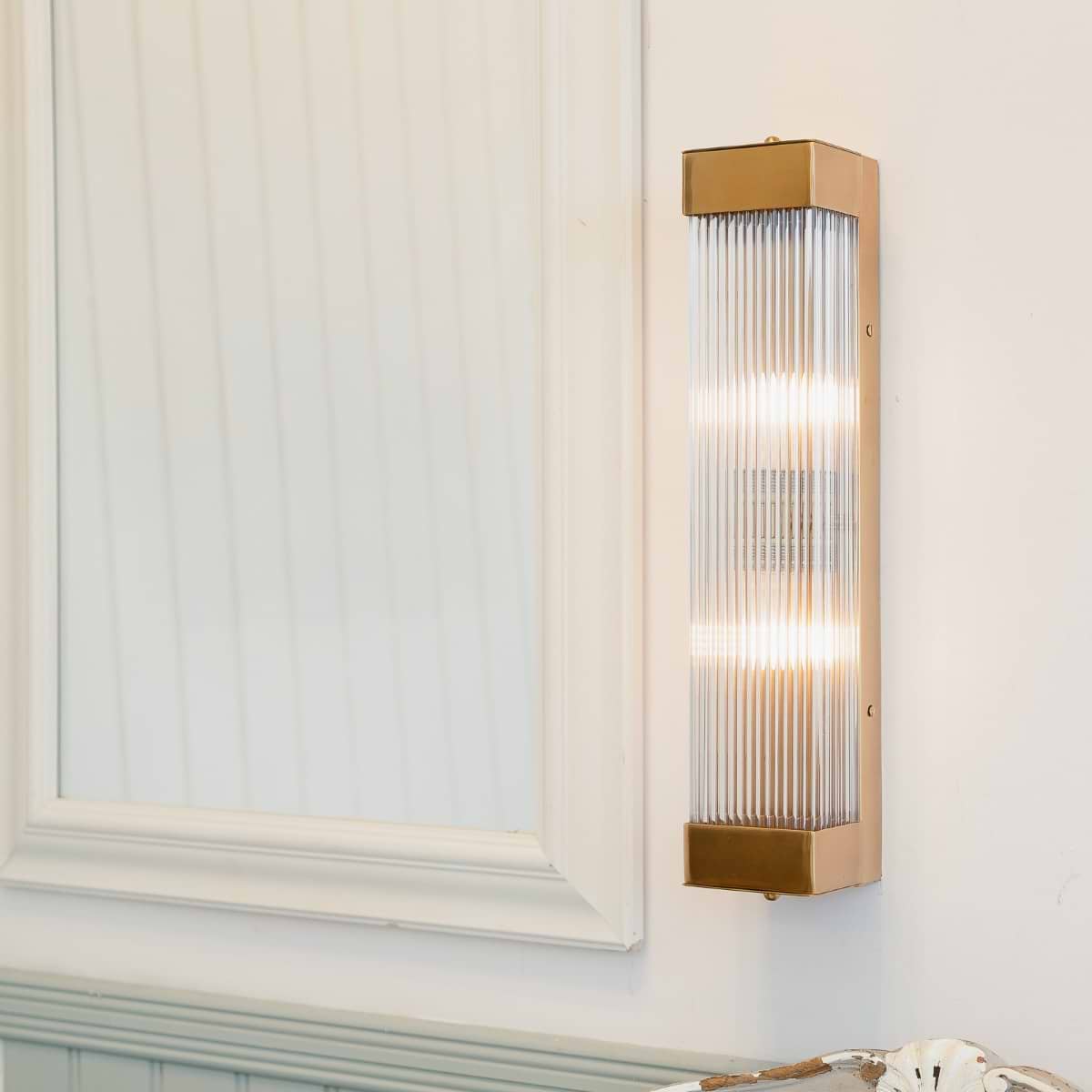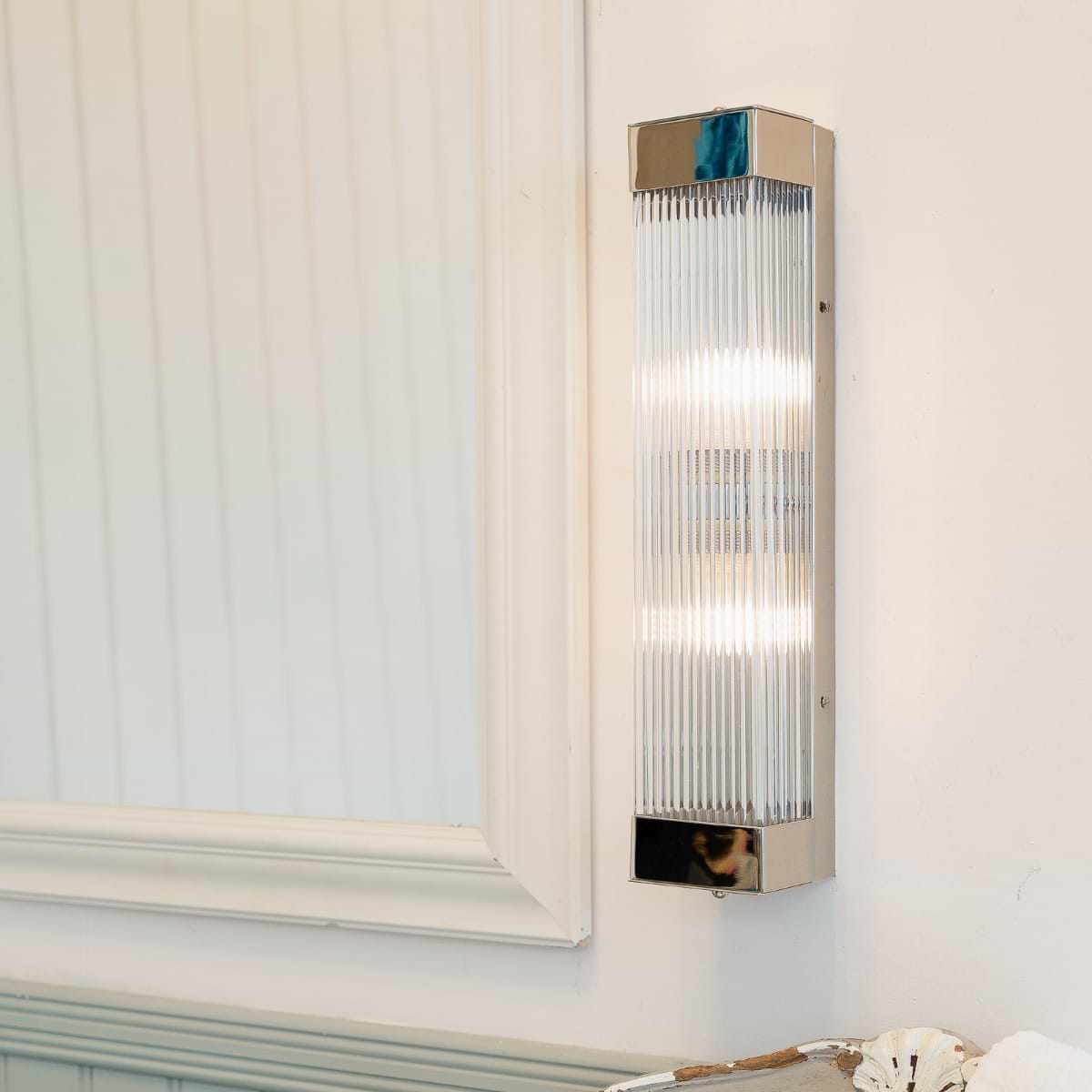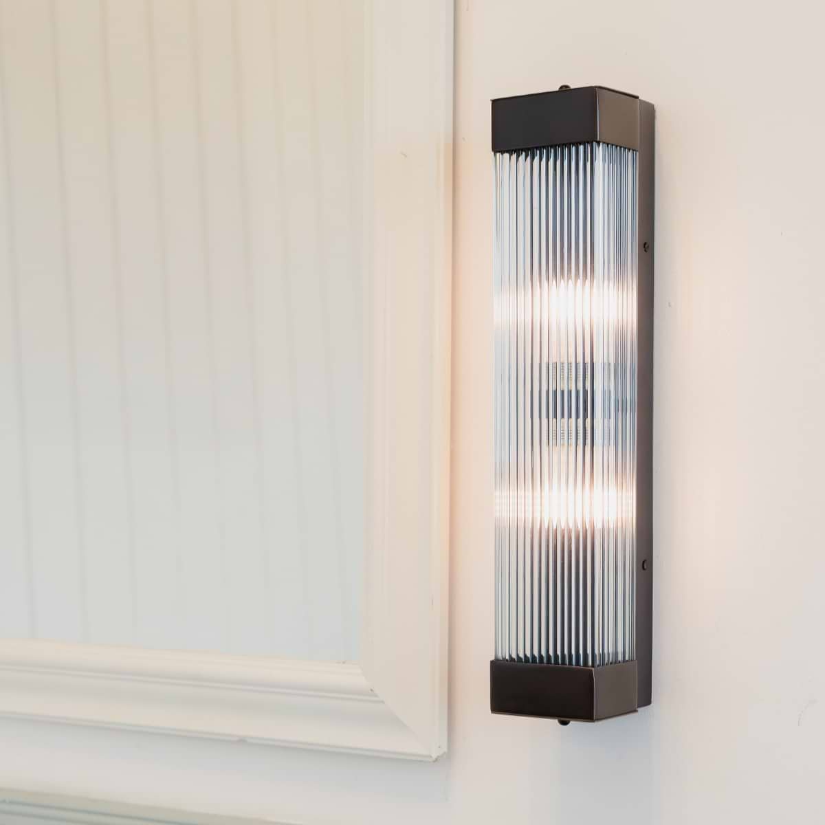 Inspired by Art Deco design, the Gatsby Tall Wall Light features a sleek rectangular light with hand-ribbed glass, offering a soft, diffused glow. Its IP rating makes it ideal for bathrooms, and the closed rod design ensures easy fitting and dust-free maintenance.