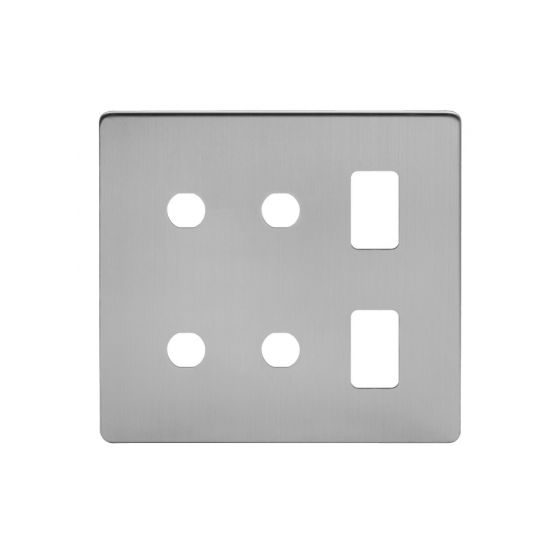 Our 6 Gang 2RM+4CM Dual Module Grid Plate from the Lombard Collection comes with a back frame/yoke and is compatible with our range of RM and CM switch modules. Our flexible and unique concept lets you create bespoke plates by mixing both rectangular rocker and circular dolly/dimmer modules to create a perfect finished plate in #brushed chrome#. Popular bespoke plates include rocker/dimmer combinations for light switches, though hundreds of unique permutations of switch and isolation plates are possible, each delivering a perfect finish for your project. This Dual (RM+CM) Grid Plate is not compatible with EM, LT1, LT2 or LT3 modules.