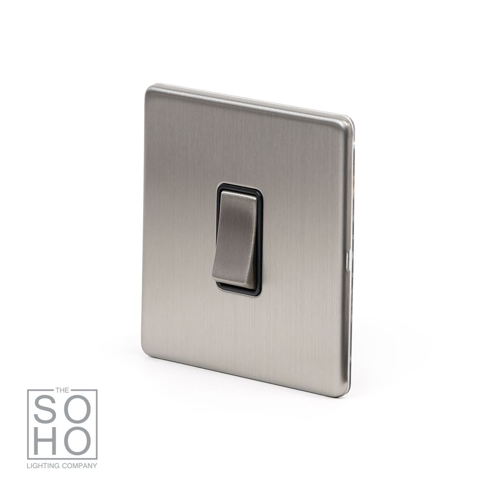 This Brushed Chrome 1 Gang 20 Amp Switch with Black Insert has a distinctive appearance and the stylish screwless finish provides a warmer tone than polished chrome and has the added benefit of hiding fingerprints and small blemishes. The smooth, rounded edges and subtle lustre and sheen finish give this collection an understated style which makes it compatible with most interiors making it a very popular choice.