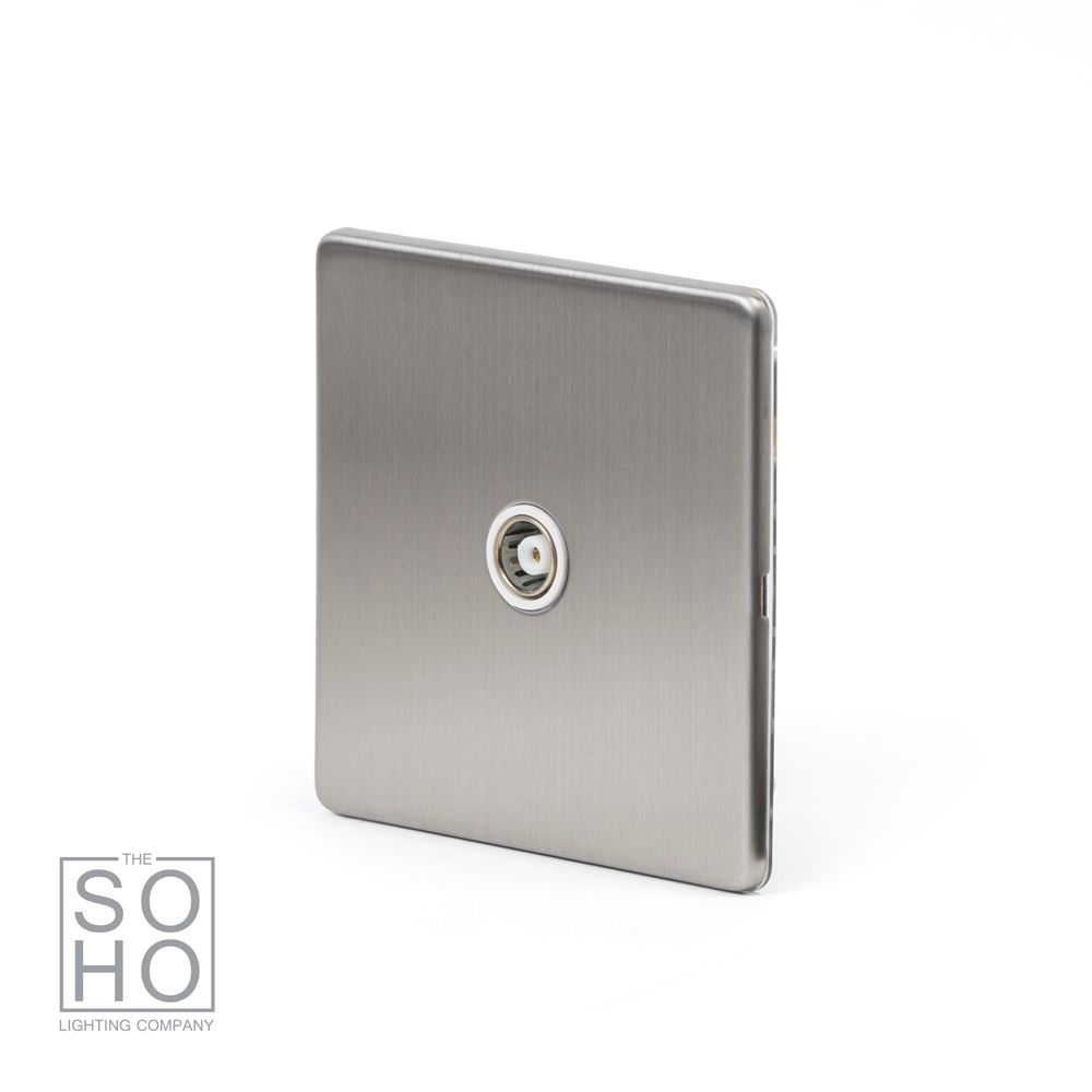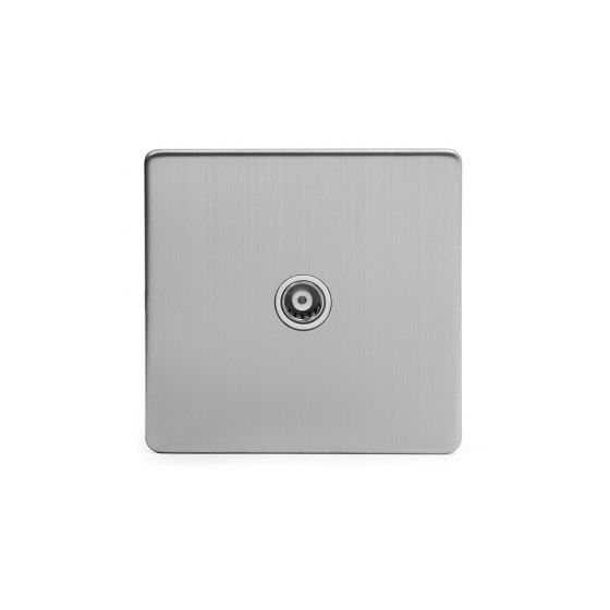 Brushed Chrome and Satin Chrome/Steel finishes are often indistinguishable, though some believe that a satin finish is a little milkier. Either way, the brushed/satin finish on this Brushed Chrome 1 Gang Co Axial and Satelite Socket diminishes light reflection and leaves a subtle lustre and sheen. The Lombard collection's distinctive appearance and stylish screwless finish provides a warmer tone than polished chrome and has the added benefit of hiding fingerprints and small blemishes.