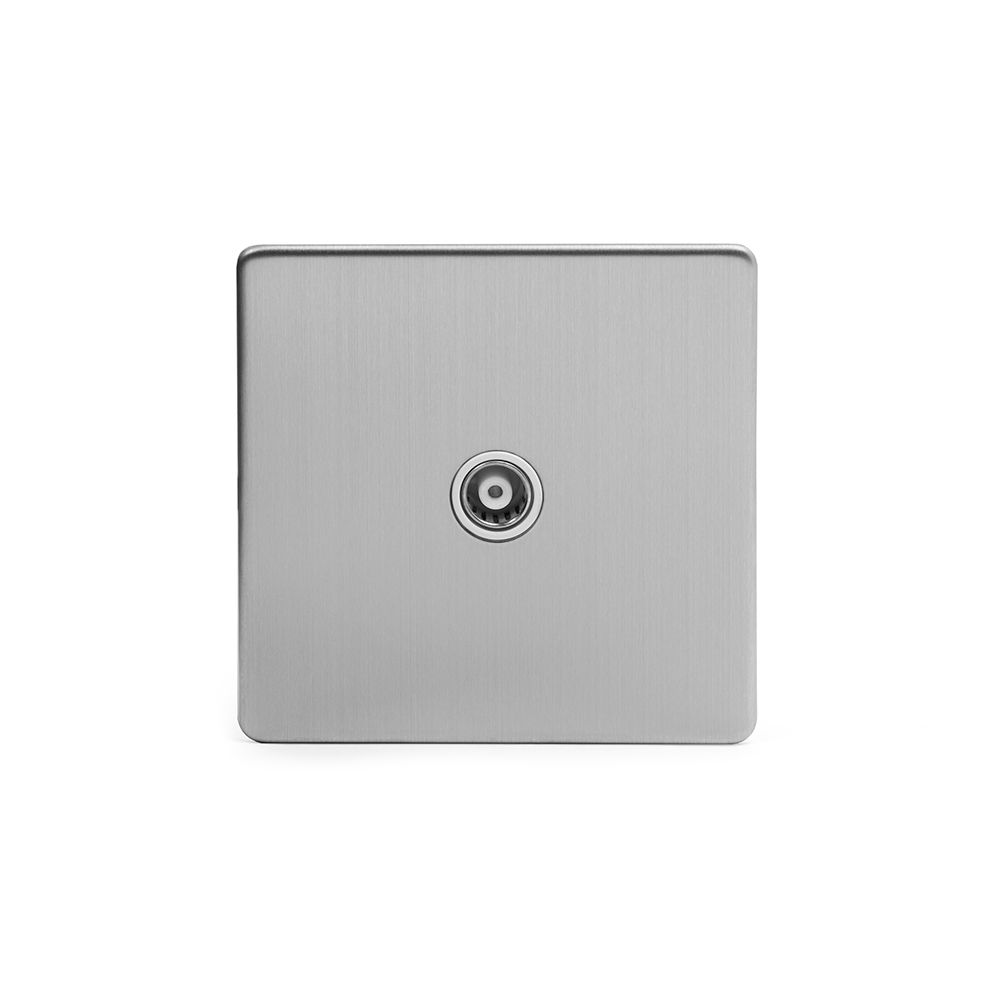 The Lombard Collection Brushed Chrome TV Coaxial Aerial Socket White Ins Screwless