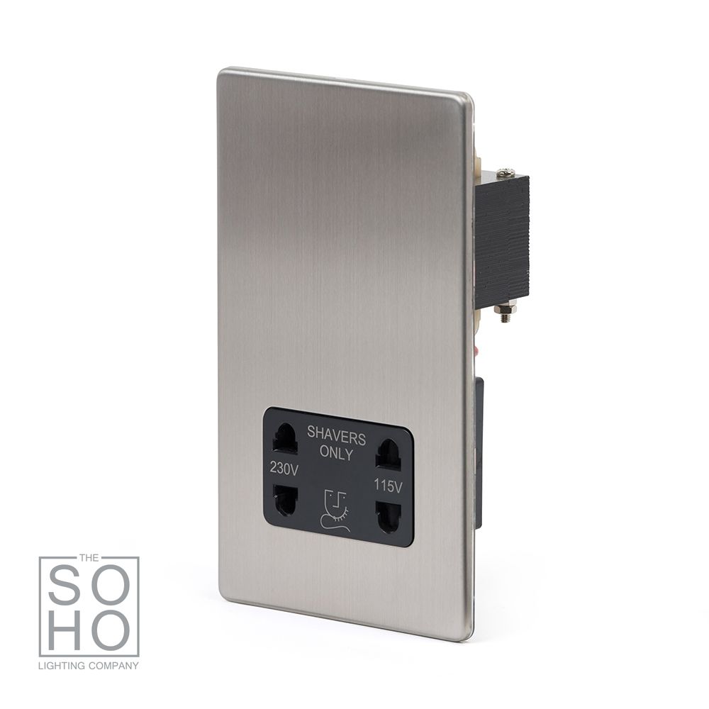 The Lombard Collection Brushed Chrome Shaver Socket Dual Voltage 115/230v Blk Ins Screwless