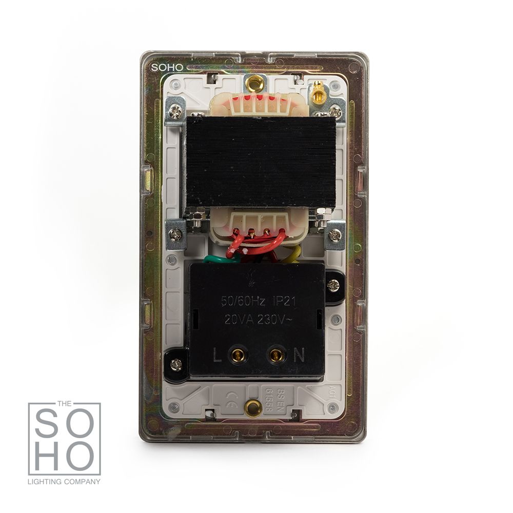 Socket and switch finishes are an important consideration for interior design and styling and should be chosen to match their surroundings. If you have brushed chrome finishes in your kitchen (unit handles/appliances) or bathroom (towel rails etc), then this Brushed Chrome 1 Gang Shaver Socket will provide the perfect compliment. They work particularly well in modern and contemporary spaces and high traffic areas or for young families.