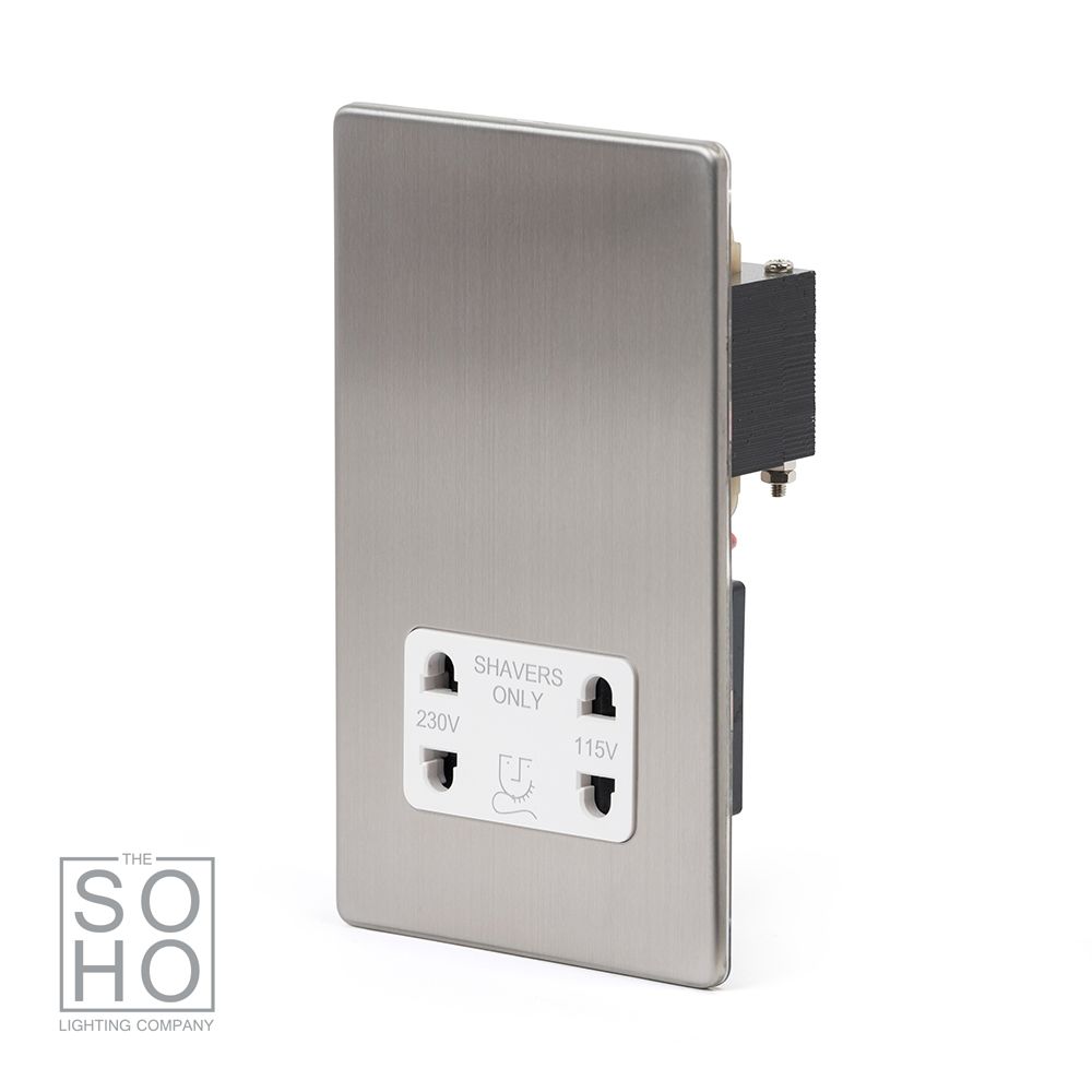 The Lombard Collection Brushed Chrome Shaver Socket Dual Voltage 115/230v Wht Ins Screwless