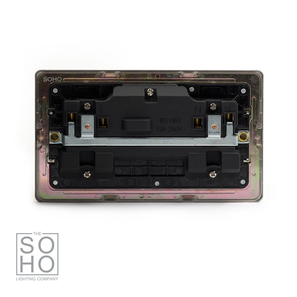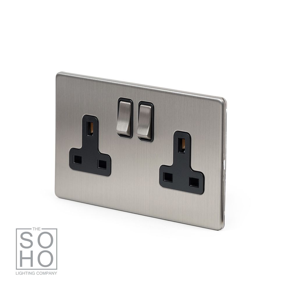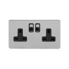 The Lombard Collection Brushed Chrome 2 Gang DP Socket Black Ins 13A Screwless