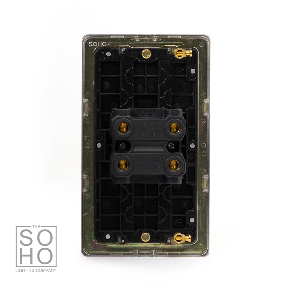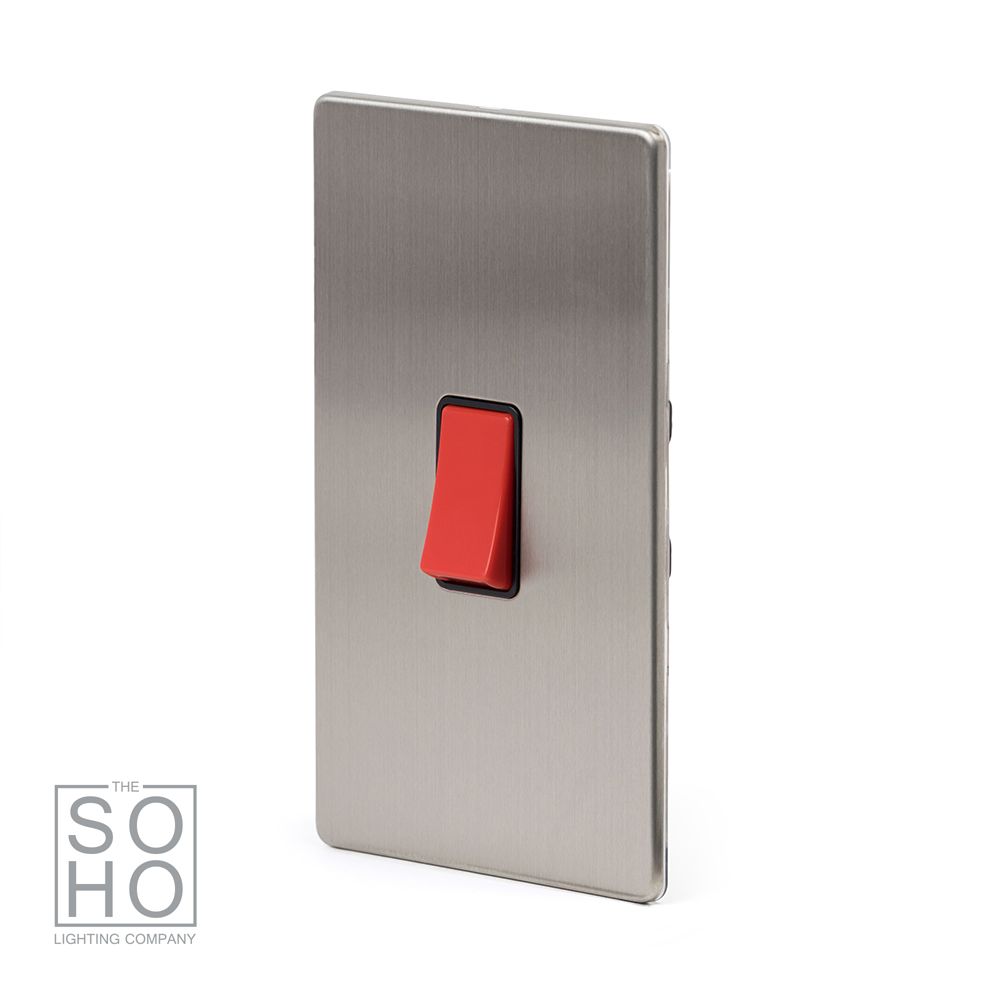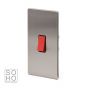 The Lombard Collection Brushed Chrome 45A 1 Gang Double Pole Switch Double Plate Blk Ins Screwless